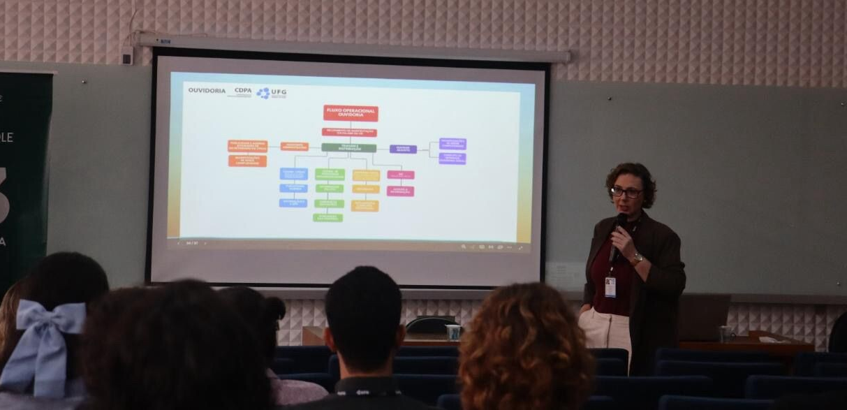 No dia 27 de fevereiro, às 10h, foi realizada no auditório da Faculdade de Ciência e Tecnologia (FCT), em Aparecida de Goiânia, uma apresentação sobre Ouvidoria e a Câmara de Prevenção e Resolução Administrativa de Conflitos (CPRAC), promovida pela Ouvidoria da Universidade Federal de Goiás (UFG).